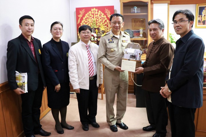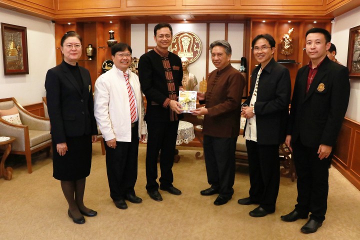 มหาวิทยาลัยราชภัฏเชียงใหม่ นำโดย ผู้ช่วยศาสตราจารย์ ดร.ชาตรี มณีโกศล รักษาราชการแทนอธิการบดี พร้อมคณะผู้บริหาร ร่วมสวัสดีปีใหม่ นายปวิณ ชำนิประศาสน์ ผู้ว่าราชการจังหวัดเชียงใหม่ นายประจวบ กันธิยะ นายพุฒิพงศ์ ศิริมาตย์ และนายกฤษณ์ ธนาวณิช รองผู้ว่าราชการจังหวัดเชียงใหม่ พร้อมมอบหนังสือ ตามรอย ... รองอำมาตย์เอกหลวงโยนะการพิจิตร : พญาตะก่า เนื่องในโอกาสเทศกาลวันขึ้นปีใหม่ 2561 ณ ห้องรับรอง ชั้น 3 อาคารอำนวยการ ศาลากลางจังหวัดเชียงใหม่ เมื่อวันที่ 29 ธันวาคม 2560