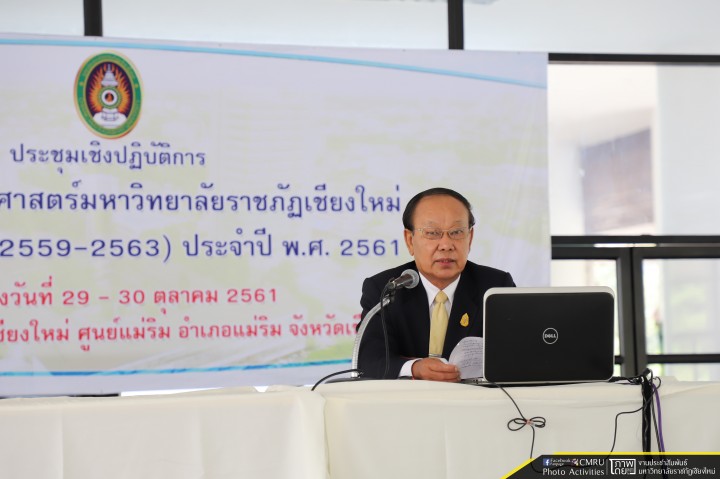 รศ.ดร.ประพันธ์ ธรรมไชย อธิการบดีมหาวิทยาลัยราชภัฏเชียงใหม่ ให้เกียรติเป็นประธานเปิดการประชุมสัมมานาเชิงปฏิบัติการเพื่อ ทบทวนแผนยุทธศาสตร์มหาวิทยาลัยราชภัฏเชียงใหม่ ระยะ 5 ปี (พ.ศ.2559 - 2563) ประจำปี 2561 ณ มหาวิทยาลัยราชภัฏเชียงใหม่ ศูนย์แม่ริม ระหว่างวันที่ 29-30 ตุลาคม 2561 ที่ผ่านมา โดยผู้บริหารมหาวิทยาลัย คณบดี รองคณบดี ผู้ช่วยคณบดี ผู้อำนวยการสำนัก/สาบัน หัวหน้าสำนักงานคณะ/สถาบัน/งาน หัวหน้าภาควิชา และบุคลากรกองนโยบายและแผนเข้าร่วมการประชุม เพื่อเป็นการรองรับการเปลี่ยนแปลงในอนาคต และการขับเคลื่อนการดำเนินงานของมหาวิทยาลัยราชภัฏเชียงใหม่ให้เกิดประสิทธิภาพและประสิทธิผล ให้สอดคล้องกับสภาพการณ์ที่เปลี่ยนแปลงไปในปัจจุบันและสอดคล้องกับแผนยุทธศาสตร์ชาติ 20 ปี อีกด้วย
