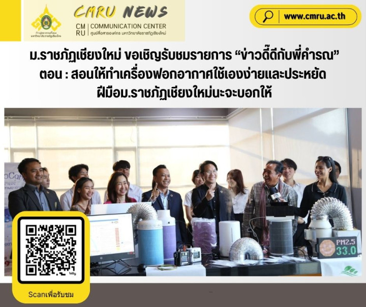 ม.ราชภัฏเชียงใหม่ ขอเชิญรับชมรายการ “ข่าวดี๊ดีกับพี่คำรณ” ตอน : สอนให้ทำเครื่องฟอกอากาศใช้เองง่ายและประหยัด ฝีมือม.ราชภัฏเชียงใหม่นะจะบอกให้