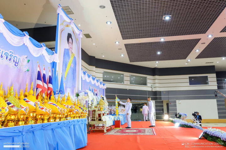 นายชัชวาลย์ ปัญญา รองผู้ว่าราชการจังหวัดเชียงใหม่ รักษาราชการแทนผู้ว่าราชการจังหวัดเชียงใหม่ เป็นประธานในพิธีถวายเครื่องราชสักการะและจุดเทียนถวายพระพรชัยมงคล สมเด็จพระนางเจ้าสิริกิติ์ พระบรมราชินีนาถ พระบรมราชชนนีพันปีหลวง เนื่องในโอกาสวันเฉลิมพระชนมพรรษา 12 สิงหาคม 2568 โดย รองศาสตราจารย์ ดร.ชาตรี มณีโกศล อธิการบดีมหาวิทยาลัยราชภัฏเชียงใหม่ มอบหมายให้ อาจารย์ ดร. ธรรศ ศรีรัตนบัลล์ ผู้อำนวยการสำนักศิลปะและวัฒนธรรม มหาวิทยาลัยราชภัฏเชียงใหม่ คณะผู้บริหารและบุคลากรมหาวิทยาลัยราชภัฏเชียงใหม่ เข้าร่วมการประกอบพิธี เข้าร่วมพิธี ณ ห้องรวงผึ้ง 1 อาคารรวงผึ้ง ศูนย์ประชุมและแสดงสินค้านานาชาติ เฉลิมพระเกียรติ 7 รอบพระชนมพรรษา จังหวัดเชียงใหม่ เมื่อวันที่ 12 สิงหาคม 2568 ที่ผ่านมา เพื่อเป็นการแสดงความจักภักดีและน้อมสำนึกถึงพระมหากรุณาธิคุณของสมเด็จพระนางเจ้าสิริกิติ์ พระบรมราชินีนาถ พระบรมราชชนนีพันปีหลวง ที่ได้ทรงอุทิศกำลังพระวรกาย กำลังพระปัญญาและกำลังพระราชทรัพย์ สร้างความอุดมสมบูรณ์และริเริ่มโครงการที่เป็นประโยชน์แก่แผ่นดินอย่างมากมาย ทรงห่วงใยปวงพสกนิกร ตลอดระยะเวลาอันยาวนาน พระองค์ได้อุทิศพระวรกาย พระปัญญาและพระราชทรัพย์ ปฏิบัติบำเพ็ญพระราชกรณียกิจนานัปการเพื่ออำนวยประโยชน์แก่อาณาประชาราษฎร์