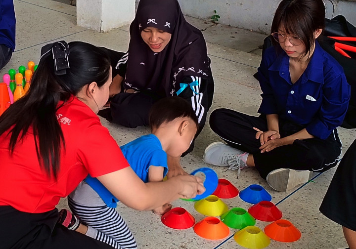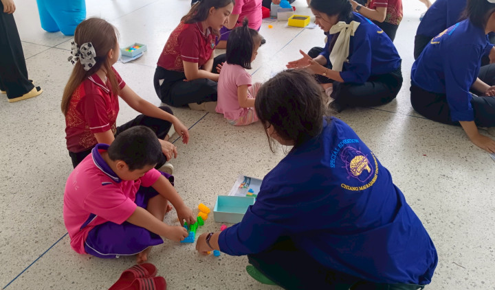 โครงการนี้มุ่งพัฒนาทักษะในการจัดกิจกรรมทางกายแก่นักศึกษาหลักสูตรการศึกษาพิเศษ ชั้นปีที่ 1 – 2 สำหรับการทำงานร่วมกับนักเรียนที่มีความบกพร่องทางสติปัญญา เสริมสร้างทัศนคติเชิงบวกของนักศึกษาต่อผู้เรียนที่มีความต้องการพิเศษ และส่งเสริมความสามารถทางกาย การเรียนรู้ การสื่อสาร รวมถึงการเข้าสังคมของนักเรียนที่มีความบกพร่องทางสติปัญญา กิจกรรมมีผู้เข้าร่วมทั้งหมด 140 คน ประกอบด้วยอาจารย์และนักศึกษาหลักสูตรการศึกษาพิเศษ ชั้นปีที่ 1 – 2 จำนวน 60 คน Mentor และครูพี่เลี้ยง 20 คน และนักเรียน ที่มีความบกพร่องทางสติปัญญาจำนวน 60 คน นักศึกษาได้แบ่งกลุ่มเพื่อดำเนินกิจกรรมและพาเด็ก ๆ เข้าฐานการเรียนรู้แต่ละฐาน กิจกรรมแบ่งเป็น 5 ฐาน ได้แก่ การต่อบล็อกตัวต่อขนาดใหญ่ การต่อจิ๊กซอว์ภาพทั้งขนาดเล็กและใหญ่ การเคลื่อนไหวตามสีและวางบอลสีในถ้วย การเคลื่อนไหวผ่านอุปสรรค และการจับคู่ภาพเหมือนโครงการดังกล่าวไม่เพียงมุ่งให้นักศึกษาการศึกษาพิเศษพัฒนาทักษะการจัดกิจกรรมสำหรับผู้เรียนที่มีความต้องการพิเศษ แต่ยังสร้างโอกาสให้นักเรียนที่มีความบกพร่องทางสติปัญญาได้เสริมทักษะทางกาย การสื่อสาร และการเข้าสังคมผ่านการเรียนรู้แบบมีส่วนร่วมซึ่งถือเป็นการส่งเสริมคุณภาพชีวิตและพัฒนาศักยภาพอย่างรอบด้าน