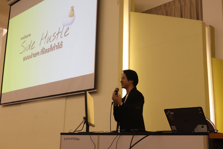 กิจกรรมครั้งนี้ได้รับเกียรติจากทีมวิทยากรผู้เชี่ยวชาญจาก BlackCat Agency Co.,Ltd. นำโดย คุณณัฐนันท์ อินแถลง Founder & CMO ถ่ายทอดความรู้ในหัวข้อ “วิธีหารายได้จากโซเชียลมีเดีย โดยไม่ต้องลงทุนสูง”, “เทคนิคสร้างคอนเทนต์ให้ปังและขายของออนไลน์ได้จริง” และ “วิธีบริหารเวลา ไม่ให้กระทบการเรียน” ต่อด้วย คุณธนกฤต ธนาไกรกิติ Project Coordinator ให้ความรู้ในหัวข้อ “หาเงินจาก Side Hustle แบบง่ายๆ ที่ใครก็ทำได้” และปิดท้ายด้วย คุณกีรติ ก้อนแก้ว Graphic Designer บรรยายหัวข้อ “ภาพที่ดี เก่ากับ สื่อสารเยี่ยม Trick การออกแบบ องค์ประกอบภาพ”