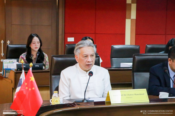 5 กันยายน 2568 รองศาสตราจารย์ ดร.ชาตรี  มณีโกศล อธิการบดีมหาวิทยาลัยราชภัฏเชียงใหม่ กล่าวต้อนรับคณะผู้บริหารและอาจารย์จากวิทยาลัยอาชีวศึกษาและเทคนิคสิบสองปันนา สาธารณรัฐประชาชนจีน นำโดย อธิการบดี เติ้ง เสี่ยวจวน ในโอกาสเดินทางเยือนมหาวิทยาลัยราชภัฏเชียงใหม่ เพื่อหารือความร่วมมือด้านวิชาการ แนวทางพัฒนาความร่วมมือด้านต่าง ๆ อาทิ การแลกเปลี่ยนนักศึกษา แลกเปลี่ยนบุคลากรทางการศึกษา ตลอดจนร่วมกันพัฒนาหลักสูตรและกิจกรรมวิชาการ โอกาสนี้ ยังได้ร่วมลงนามในบันทึกข้อตกลงความร่วมมือทางวิชาการ เพื่อร่วมกันพัฒนาคุณภาพการศึกษา การวิจัย และการแลกเปลี่ยนเรียนรู้ทางวัฒนธรรมร่วมกันในอนาคต โดยมี อาจารย์ ดร.อัครสิทธิ์ บุญส่งแท้ รองอธิการบดี, อาจารย์ ดร.วรสุดา วัฒนวงค์ ผู้อำนวยการสำนักงานวิเทศสัมพันธ์ และคณาจารย์จากวิทยาลัยนานาชาติ ร่วมเป็นสักขีพยาน ณ ห้องประชุมสภามหาวิทยาลัย อาคารราชภัฏเฉลิมพระเกียรติ มหาวิทยาลัยราชภัฏเชียงใหม่ พื้นที่เวียงบัว