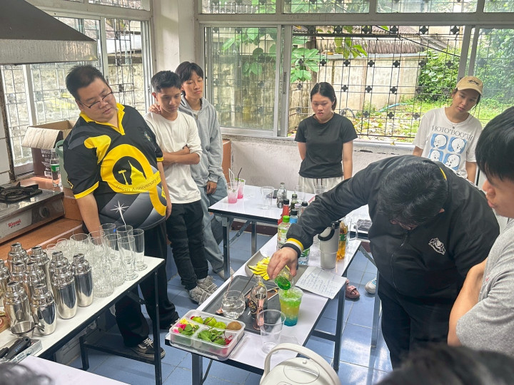 การฝึกฝนทักษะการชงเครื่องดื่มครั้งนี้ได้รับเกียรติจาก อาจารย์วรพล วัฒนเหลืองอรุณ อาจารย์ผู้สอนหลักสูตรการท่องเที่ยวและการโรงแรม คณะมนุษยศาสตร์และสังคมศาสตร์ เป็นวิทยากรให้ความรู้แก่นักศึกษา จำนวน 11 คน ณ ห้องครัว อาคารกิจการนักศึกษา มหาวิทยาลัยราชภัฏเชียงใหม่ พื้นที่เวียงบัวเพื่อเสริมสร้างประสบการณ์ตรงให้แก่นักศึกษาอย่างรอบด้าน และเป็นการยกระดับคุณภาพการเรียนรู้ที่สามารถนำไปใช้ได้จริง