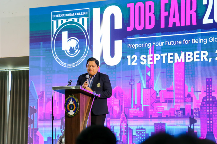 เมื่อวันที่ 12 กันยายน 2568 ผู้ช่วยศาสตราจารย์สุรศักดิ์ นุ่มมีศรี รองอธิการบดีมหาวิทยาลัยราชภัฏเชียงใหม่ ให้เกียรติเป็นประธานเปิดงาน IC JOB FAIR 2025 ซึ่งจัดขึ้นโดย วิทยาลัยนานาชาติ โดยมี รองศาสตราจารย์ ดร.สุทธินันท์ ชื่นชม คณบดีวิทยาลัยนานาชาติ กล่าวรายงานวัตถุประสงค์การจัดกิจกรรม เพื่อเปิดโอกาสให้นักศึกษา ได้พบปะพูดคุย พร้อมสมัครงานกับบริษัทและสถานประกอบการมากมาย นับเป็นการเพิ่มช่องทางให้นักศึกษาได้ค้นหาสถานที่ฝึกประสบการณ์ตามความสนใจ ณ ห้องประชุม ชั้น 15 อาคาร 90 ปี ราชภัฏเชียงใหม่ มหาวิทยาลัยราชภัฏเชียงใหม่ พื้นที่เวียงบัว