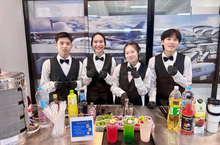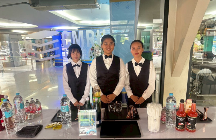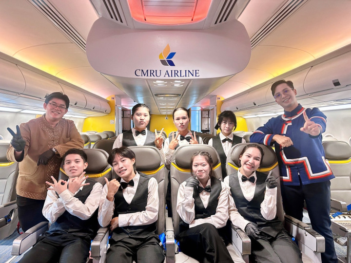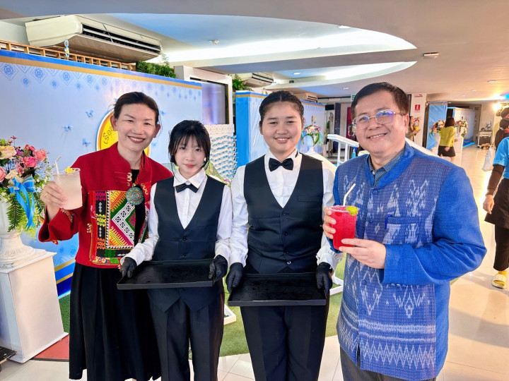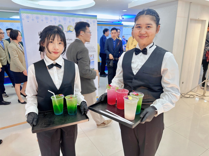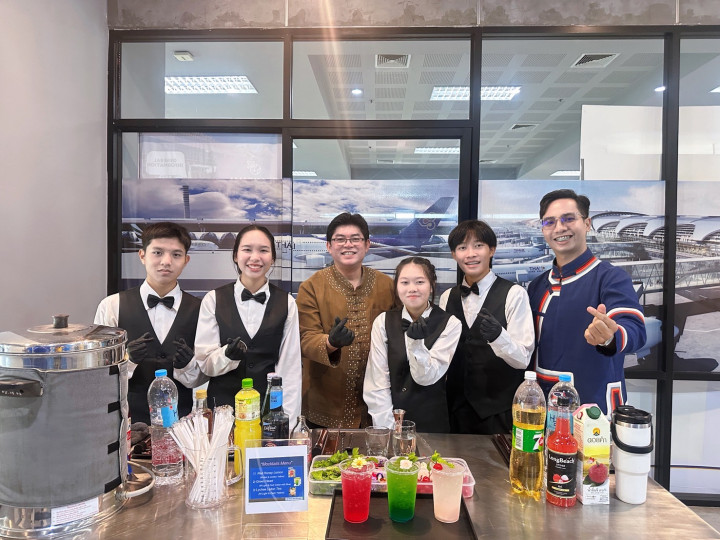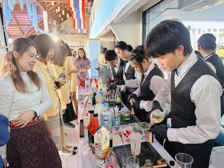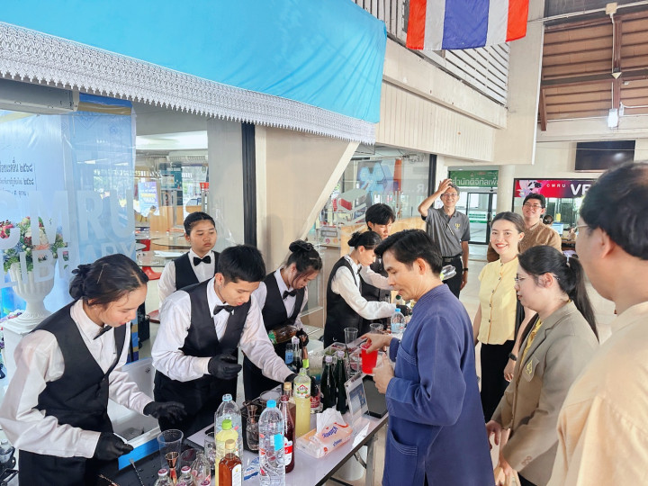 เมื่อวันที่ 17 กันยายน 2568 อาจารย์วรพล วัฒนเหลืองอรุณ อาจารย์ผู้สอนหลักสูตรการท่องเที่ยวและการโรงแรม คณะมนุษยศาสตร์และสังคมศาสตร์ มหาวิทยาลัยราชภัฏเชียงใหม่ พร้อมด้วย บุคลากรกองพัฒนานักศึกษา นำนักศึกษาสมาชิกชมรมอาชีพธุรกิจและการบริการ เข้าร่วมปฏิบัติหน้าที่ให้บริการเครื่องดื่มแก่ผู้บริหาร อาจารย์ บุคลากร ผู้เกษียณอายุราชการ และแขกผู้มีเกียรติ ในงานพิธีเชิดชูเกียรติผู้เกษียณอายุราชการ และพิธีเปิดนิทรรศการเรือชนะคลื่น ประจำปี 2568 ณ ห้องรับรองพิเศษ ศูนย์การเรียนรู้ด้านความเป็นเลิศทางการบิน ชั้น 2 อาคาร 90 ปี ราชภัฏเชียงใหม่ และห้องนิทรรศการ CMRU Library ชั้น 1 สำนักหอสมุด มหาวิทยาลัยราชภัฏเชียงใหม่ นักศึกษาได้ร่วมกันชงเครื่องดื่ม 3 สูตร ได้แก่ RED HONEY LEMON, Green Heart และ Lychee Lipton Tea โดยนำความรู้และทักษะที่ได้รับจากการฝึกอบรมการชงเครื่องดื่ม เมื่อวันที่ 10 กันยายน 2568 มาประยุกต์ใช้ในการปฏิบัติจริง ทั้งในด้านการเตรียมอุปกรณ์ วัตถุดิบ การให้บริการ ตลอดจนการทำงานเป็นทีม