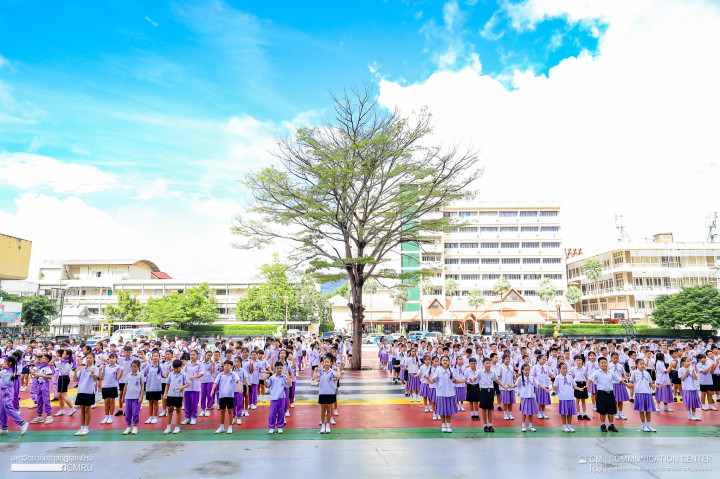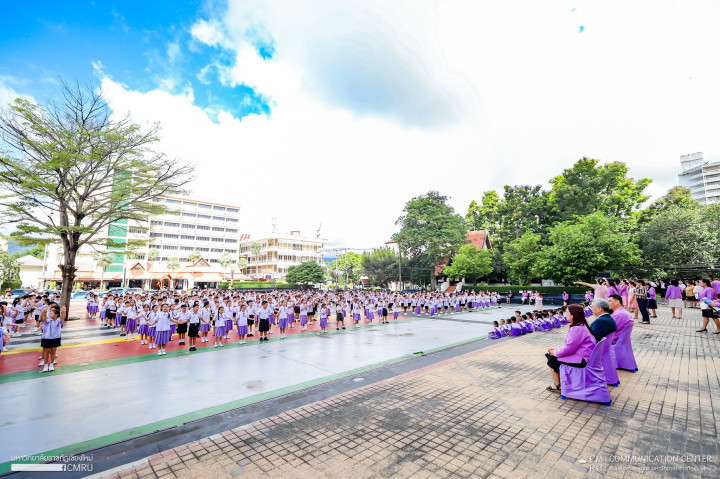 โอกาสนี้ได้รับเกียรติจาก รองศาสตราจารย์ ดร.ชาตรี มณีโกศล อธิการบดีมหาวิทยาลัยราชภัฏเชียงใหม่ พร้อมด้วย ผู้ช่วยศาสตราจารย์ ดร.กฤษฎา บุญชม ผู้อำนวยการโรงเรียนสาธิตมหาวิทยาลัยราชภัฏเชียงใหม่ นางปริยาพร กองคำ รองผู้อำนวยการโรงเรียน คณะครู และนักเรียนระดับชั้นเตรียมอนุบาล และชั้นอนุบาล 1 – 3 ร่วมรับชมกิจกรรม ณ ลานกิจกรรมด้านหน้าอาคาร 90 ปี ราชภัฏเชียงใหม่ มหาวิทยาลัยราชภัฏเชียงใหม่ พื้นที่เวียงบัว อำเภอเมืองเชียงใหม่ จังหวัดเชียงใหม่