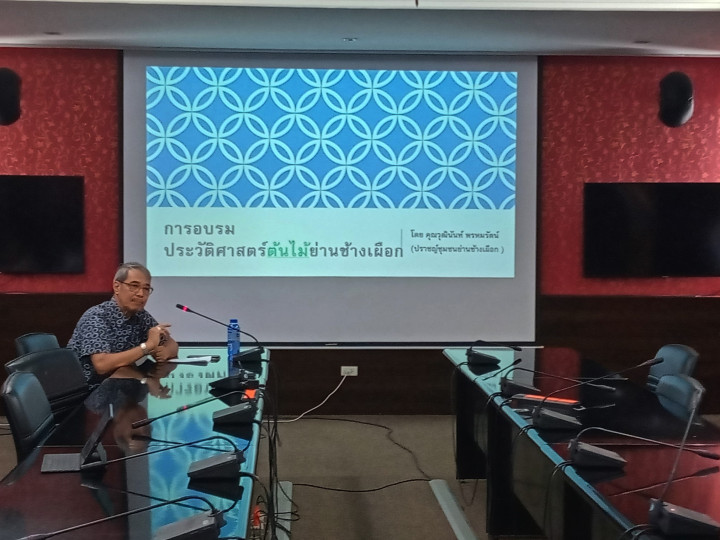 การอบรมครั้งนี้ได้รับเกียรติจาก คุณวุฒินันท์ พรมรัตน์ ปราชญ์ชุมชนย่านช้างเผือก บรรยายหัวข้อ “ประวัติศาสตร์ต้นไม้ย่านช้างเผือก” ถ่ายทอดเรื่องราวความผูกพันระหว่างชุมชนกับต้นไม้ที่มีคุณค่าทางประวัติศาสตร์ และ คุณณปวันชัย กุลฉัตรฐานนท์ อดีตหัวหน้าอุทยานแห่งชาติดอยขุนตาล บรรยายหัวข้อ “ความรู้เกี่ยวกับต้นไม้ การเก็บข้อมูลและการจัดการต้นไม้โบราณ” เน้นให้ผู้เรียนเข้าใจหลักวิชาการควบคู่กับการอนุรักษ์ กิจกรรมนี้ไม่เพียงมุ่งให้ความรู้ทางวิชาการ แต่ยังช่วยให้นักศึกษาได้เรียนรู้ทักษะเชิงปฏิบัติในการสำรวจและจัดการต้นไม้โบราณ ฝึกการสังเกต เก็บข้อมูลเชิงระบบ และเข้าใจคุณค่าทั้งทางธรรมชาติ ประวัติศาสตร์ และวัฒนธรรมของต้นไม้ที่อยู่ร่วมกับชุมชนมาอย่างยาวนาน นอกจากนี้ยังเป็นการปลูกฝังจิตสำนึกอนุรักษ์สิ่งแวดล้อม และสร้างความตระหนักถึงบทบาทของมนุษย์ต่อระบบนิเวศธรรมชาติ ซึ่งเป็นทักษะและแนวคิดสำคัญในการทำงานด้านประวัติศาสตร์และการจัดการมรดกวัฒนธรรมในอนาคตการเรียนรู้จากผู้ทรงภูมิปัญญาท้องถิ่นและผู้เชี่ยวชาญในด้านป่าไม้ ยังช่วยให้นักศึกษาเชื่อมโยงองค์ความรู้ระหว่างห้องเรียนกับพื้นที่จริง ตระหนักถึงความสำคัญของการรักษาทรัพยากรทางวัฒนธรรมและธรรมชาติ เพื่อสืบทอดและพัฒนาสู่สังคม