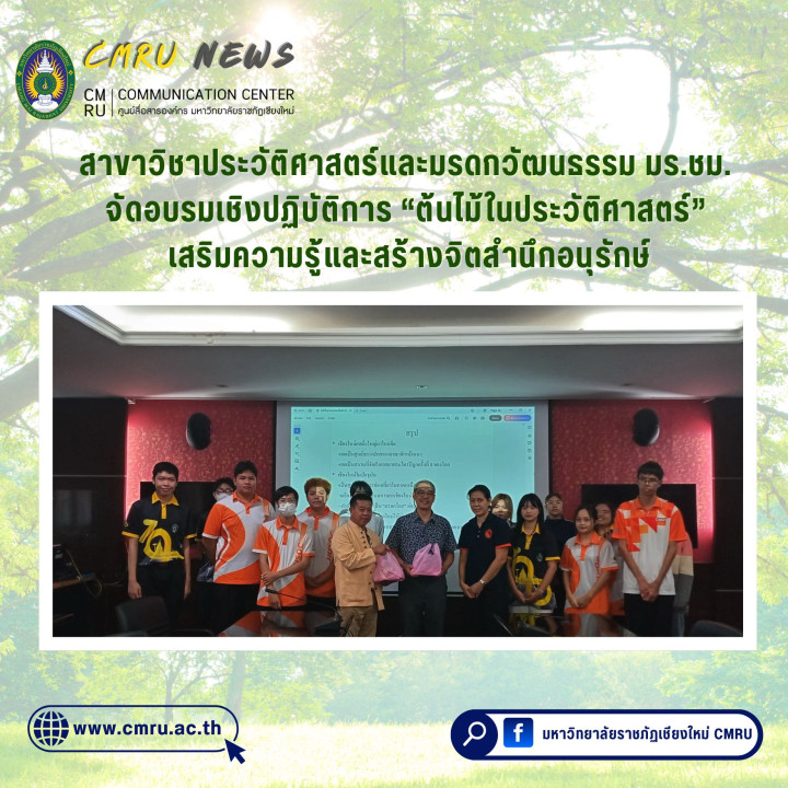 สาขาวิชาประวัติศาสตร์และมรดกวัฒนธรรม มร.ชม. จัดอบรมเชิงปฏิบัติการ “ต้นไม้ในประวัติศาสตร์” เสริมความรู้และสร้างจิตสำนึกอนุรักษ์