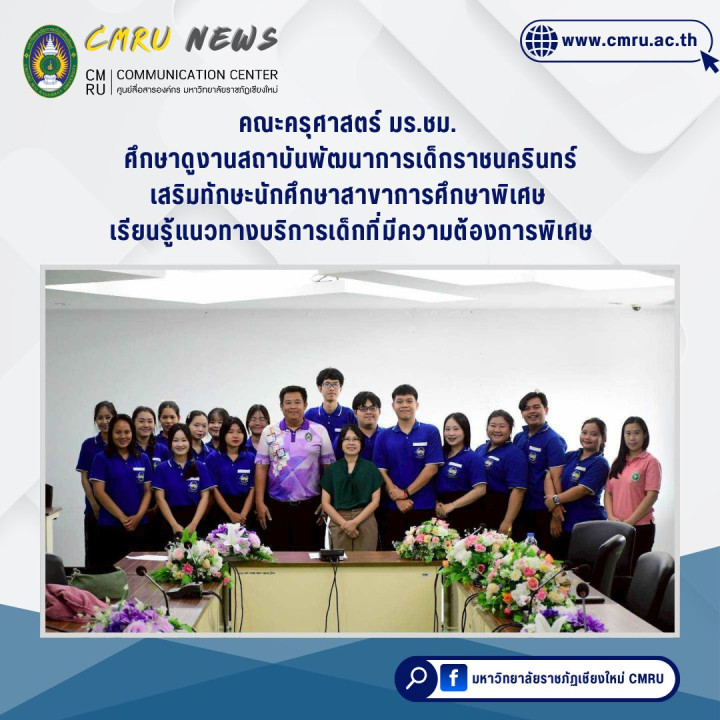 คณะครุศาสตร์ มร.ชม. ศึกษาดูงานสถาบันพัฒนาการเด็กราชนครินทร์ เสริมทักษะนักศึกษาสาขาการศึกษาพิเศษ เรียนรู้แนวทางบริการเด็กที่มีความต้องการพิเศษ