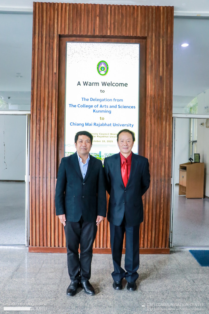 10 ตุลาคม 2568 รองศาสตราจารย์ ดร.ชาตรี มณีโกศล อธิการบดีมหาวิทยาลัยราชภัฏเชียงใหม่ มอบหมายให้ อาจารย์ ดร.อัครสิทธิ์ บุญส่งแท้ รองอธิการบดี นำคณะผู้บริหาร คณาจารย์ และบุคลากรมหาวิทยาลัย ร่วมต้อนรับผู้บริหารและคณาจารย์จาก มหาวิทยาลัยศิลปศาสตร์และวิทยาศาสตร์ คุนหมิง (The college of arts and sctences Kunming) สาธารณรัฐประชาชนจีน ในโอกาสเดินทางมาเยือนมหาวิทยาลัยราชภัฏเชียงใหม่เพื่อหารือการส่งเสริมความร่วมมือด้านวิชาการ การฝึกอบรมแก่นักศึกษาและคณาจารย์ บุคลากรทางการศึกษา การแลกเปลี่ยนเรียนรู้ด้านภาษาและวัฒนธรรม ตลอดจนความร่วมมือระหว่างมหาวิทยาลัยและภาคอุตสาหกรรม ณ ห้องประชุมสภามหาวิทยาลัย อาคารราชภัฏเฉลิมพระเกียรติ มหาวิทยาลัยราชภัฏเชียงใหม่ พื้นที่เวียงบัว