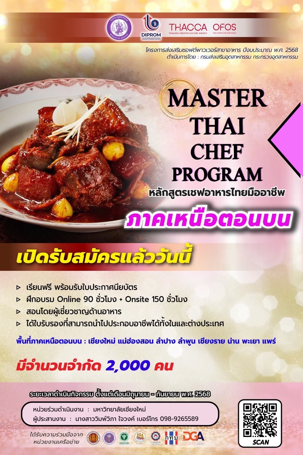 (Master Thai Chef Program)  ภายใต้โครงการส่งเสริมซอฟต์พาวเวอร์สาขาอาหารไทย เพื่อยกระดับทักษะคนไทยให้เป็นแรงงานทักษะสูง พร้อมสร้างองค์ความรู้และทักษะด้านอาหารไทยอย่างเป็นระบบ