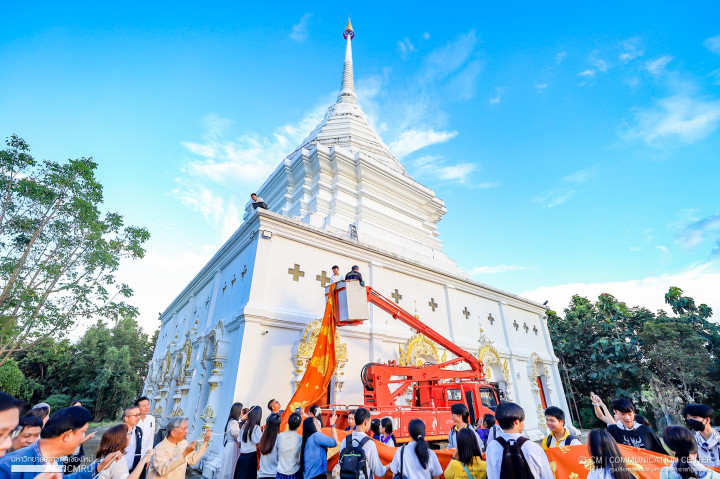 31 ตุลาคม 2568 รองศาสตราจารย์ ดร.ชาตรี มณีโกศล อธิการบดีมหาวิทยาลัยราชภัฏเชียงใหม่ นำคณะผู้บริหาร คณาจารย์ บุคลากร และนักศึกษา ร่วมกิจกรรมสืบฮีตสานฮอยยี่เป็งล้านนา ไหว้สาองค์พระมหาเจดีย์ ประจำปี 2568 และถวายเป็นพระราชกุศลแด่ สมเด็จพระนางเจ้าสิริกิติ์ พระบรมราชินีนาถ พระบรมราชชนนีพันปีหลวง ซึ่งจัดขึ้นโดยสำนักศิลปะและวัฒนธรรม มหาวิทยาลัยราชภัฏเชียงใหม่ ณ องค์พระมหาเจดีย์ มหาวิทยาลัยราชภัฏเชียงใหม่ ศูนย์แม่ริม อำเภอแม่ริม จังหวัดเชียงใหม่ ภายในกิจกรรมประกอบด้วย การบรรยายธรรม เรื่อง คุณธรรม จริยธรรม เพื่อพัฒนาคุณภาพชีวิต และอานิสงส์จุดผางประทีป ถวายโคมและห่มผ้าองค์พระมหาเจดีย์ โดย พระครูสิริปริยัตยานุศาสก์, ดร. รองเจ้าคณะอำเภอแม่แจ่ม เจ้าอาวาสวัดพันแหวน อำเภอเมือง จังหวัดเชียงใหม่ จากนั้นผู้เข้าร่วมกิจกรรมได้ตั้งขบวนแห่ในกิจกรรมห่มผ้าพระธาตุ บูชาองค์พระมหาเจดีย์ ณ บริเวณด้านหน้าหอประชุมทีปังกรรัศมีโชติ เคลื่อนมายังองค์พระมหาเจดีย์ เจ้าหน้าที่ดำเนินการห่มผ้ารอบองค์พระมหาเจดีย์ มีความยาว 39 เมตร