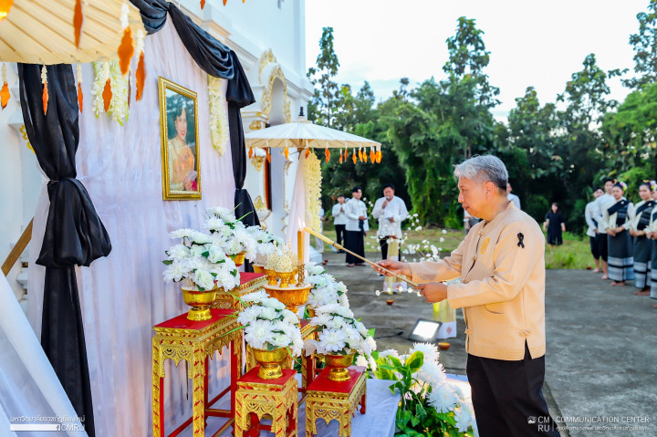 ในการนี้ อธิการบดีมหาวิทยาลัยราชภัฏเชียงใหม่ ได้จุดธูปเทียนเครื่องทองน้อย เบื้องหน้าพระฉายาลักษณ์สมเด็จพระนางเจ้าสิริกิติ์ พระบรมราชินีนาถ พระบรมราชชนนีพันปีหลวง พร้อมนำผู้เข้าร่วมกิจกรรมยืนสงบนิ่งถวายความอาลัย เป็นเวลา 93 วินาที ก่อนจะได้ร่วมกันจุดผางประทีป จำนวน 1,000 ดวง และรับชมการแสดงฟ้อน โดยนักศึกษาหลักสูตรครุศาสตรบัณฑิต สาขาวิชานาฏศิลป์ศึกษา การจุดดอกไม้ไฟบูชาองค์พระมหาเจดีย์ ถวายเป็นพระราชกุศล และน้อมรำลึกถึงพระมหากรุณาธิคุณ สมเด็จพระบรมราชชนนีพันปีหลวง