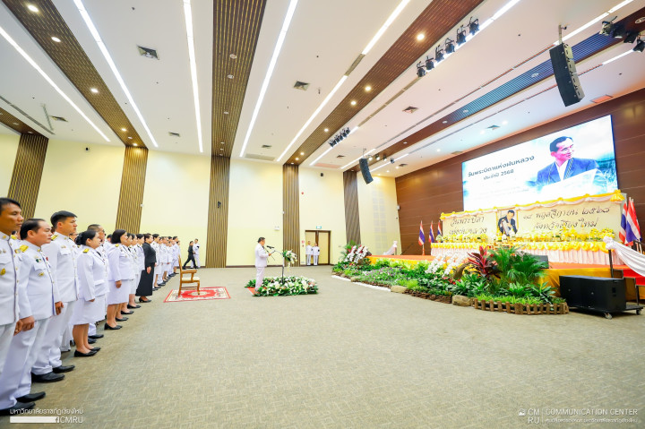 รศ.ดร.ชาตรี มณีโกศล อธิการบดีมหาวิทยาลัยราชภัฏเชียงใหม่ มอบหมายให้ อาจารย์ ดร.อัครสิทธิ์ บุญส่งแท้ รองอธิการบดี มหาวิทยาลัยราชภัฏเชียงใหม่ พร้อมด้วยผู้บริหารและบุคลากรมหาวิทยาลัยราชภัฏเชียงใหม่ เข้าร่วมพิธีวางพานพุ่มดอกไม้สด เนื่องในวันพระบิดาแห่งฝนหลวง ประจำปี 2568 โดยมี นายชัชวาลย์ ปัญญา รองผู้ว่าราชการจังหวัดเชียงใหม่ เป็นประธานในพิธีวางพานพุ่มดอกไม้สด เนื่องในวันพระบิดาแห่งฝนหลวง ประจำปี 2568 เบื้องหน้าพระบรมฉายาลักษณ์ พระบาทสมเด็จพระบรมชนกาธิเบศร มหาภูมิพลอดุลยเดชมหาราช บรมนาถบพิตร เพื่อเป็นการน้อมรำลึกในพระมหากรุณาธิคุณ เนื่องในวันพระบิดาแห่งฝนหลวง ประจำปี 2568 ณ ห้องราชพฤกษ์ อาคารนิทรรศการ 1 อุทยานหลวงราชพฤกษ์ จังหวัดเชียงใหม่ เมื่อวันที่ 14 พฤศจิกายน 2568 ที่ผ่านมา