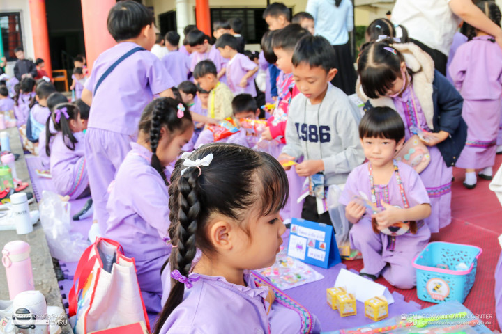 28 พฤศจิกายน 2568 โรงเรียนสาธิตมหาวิทยาลัยราชภัฏเชียงใหม่ แผนกปฐมวัย จัดกิจกรรมตลาดสดน้องอนุบาล ณ ลานกิจกรรมบริเวณหน้าเสาธง (แผนกปฐมวัย) โดยจำลองสถานการณ์ซื้อขาย เปิดโอกาสให้นักเรียนระดับชั้นอนุบาล 3 นำสินค้า อาทิ ขนม ของเล่น และผลิตภัณฑ์ต่าง ๆ มาจำหน่าย ให้กับน้อง ๆ ระดับชั้นอนุบาล 1 และ 2 รวมถึงพี่ ๆ ระดับชั้นประถมศึกษาปีที่ 1 และ 3 ซึ่งเป็นหนึ่งในกิจกรรมหน่วยการเรียนรู้ เรื่อง “เงินตรา” เพื่อให้นักเรียนได้รู้จักการจำแนกประเภทและชนิดของเงิน การนับมูลค่า นอกจากนี้ยังช่วยให้นักเรียนเกิดความคุ้นเคยกับเงินตรา รู้จักคุณค่าของเงิน และนำความรู้ไปใช้ในชีวิตประจำวันได้