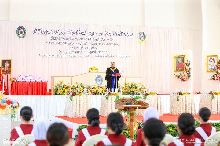 รศ.ดร.ชาตรี มณีโกศล อธิการบดีมหาวิทยาลัยราชภัฏเชียงใหม่ เป็นประธานเปิดพิธีมอบหมวก เข็มชั้นปี และตะเกียงไนติงเกล สำหรับนักศึกษาหลักสูตรพยาบาลศาสตรบัณฑิต รุ่นที่ 1 คณะพยาบาลศาสตร์ มหาวิทยาลัยราชภัฏเชียงใหม่ วิทยาเขตแม่ฮ่องสอน ประจำปีการศึกษา 2568 โดยมี นายบุญลือ ธรรมธรานุรักษ์ รองผู้ว่าราชการจังหวัดแม่ฮ่องสอน และผู้ทรงคุณวุฒิ ร่วมกล่าวแสดงความยินดีกับนักศึกษาหลักสูตรพยาบาลศาสตรบัณฑิต ณ หอประชุมมหาวิทยาลัยราชภัฏเชียงใหม่ วิทยาเขตแม่ฮ่องสอน อำเภอเมืองแม่ฮ่องสอน จังหวัดแม่ฮ่องสอน เมื่อวันที่ 29 พฤศจิกายน 2568 ที่ผ่านมา