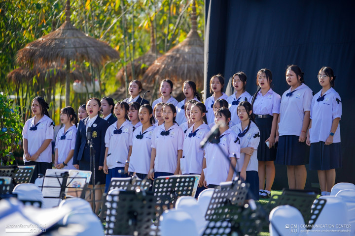 ภายในงานรองศาสตราจารย์พรสวรรค์ จันทะวงศ์ ประธานหลักสูตรดนตรีสากล คณะมนุษยศาสตร์และสังคมศาสตร์ ได้นำนักศึกษาหลักสูตรดนตรีสากลร่วมขับร้องประสานเสียงกับวงดนตรีจิตอาสาพระราชทาน จังหวัดเชียงใหม่ ถวายการต้อนรับ โอกาสนี้คณะผู้แทนได้เข้ารับมอบของที่ระลึกจาก พลเอก กัมปนาท รุดดิษฐ์ องคมนตรี การเข้าร่วมครั้งนี้สะท้อนถึงศักยภาพด้านดนตรีของหลักสูตรดนตรีสากล มหาวิทยาลัยราชภัฏเชียงใหม่ ที่ได้แสดงออกถึงความจงรักภักดีผ่านการบรรเลงและขับร้อง เพื่อถวายงานและสนับสนุนภารกิจสำคัญของโครงการหลวงอย่างสมพระเกียรติ