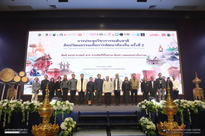 เมื่อวันที่ 3 ธันวาคม 2568 รศ.ดร.ชาตรี มณีโกศล อธิการบดี มหาวิทยาลัยราชภัฏเชียงใหม่ เป็นประธานในพิธีเปิดการประชุมวิชาการระดับชาติ ศิลปวัฒนธรรมเพื่อการพัฒนาท้องถิ่น ครั้งที่ 2 ศิลป์ สรรค์ ศาสตร์ สาร จากคัมภีร์ใบลาน พับสา และเอกสารโบราณ ณ ห้องคุ้มคำหลวง ศูนย์ประชุมนานาชาติคุ้มคำ จังหวัดเชียงใหม่ โดยมี อ.ดร.ธรรศ ศรีรัตนบัลล์ ผู้อำนวยการสำนักศิลปะและวัฒนธรรม มหาวิทยาลัยราชภัฏเชียงใหม่ กล่าวรายงาน ภายในงานมีการแสดงนิทรรศการ การแสดงกลองไชยมงคล โดยเพชรราชภัฏ - เพชรล้านนา และนักศึกษา มหาวิทยาลัยราชภัฏเชียงใหม่ การแสดงจากสำนักศิลปะและวัฒนธรรม มหาวิทยาลัยราชภัฏลำปาง การอภิปราย หัวข้อ ศิลป์ สรรค์ ศาสตร์ สาร ในคัมภีร์ใบลาน พับสา และเอกสารโบราณ โดยวิทยากร พระครูอนุวัตรอินทคุณ เจ้าอาวาสวัดทุ่งโป่ง อำเภอปาย จังหวัดแม่ฮ่องสอน ผู้เชี่ยวชาญการใช้อักษรธรรมล้านนา ไทใหญ่ พม่า ในเอกสารโบราณ, อาจารย์ทม เกตุวงศา ผู้อำนวยการสถาบันวิจัยศิลปะและวัฒนธรรมอีสานมหาวิทยาลัยมหาสารคาม, อาจารย์ ดร.สุรินทร์ ศรีสังข์งาม ผู้อำนวยการสถาบันอยุธยาศึกษา มหาวิทยาลัยราชภัฏพระนครศรีอยุธยา และ อาจารย์พนิดา ผาติโกเมศ ผู้อำนวยการสถาบันทักษิณคดีศึกษา มหาวิทยาลัยทักษิณ