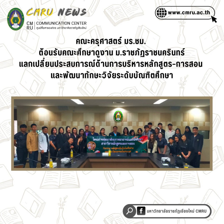 คณะครุศาสตร์ มร.ชม. ต้อนรับคณะดูงานจาก ม.ราชภัฏราชนครินทร์ แลกเปลี่ยนประสบการณ์ด้านการบริหารหลักสูตร–การสอน และพัฒนาทักษะวิจัยระดับบัณฑิตศึกษา