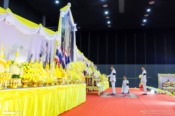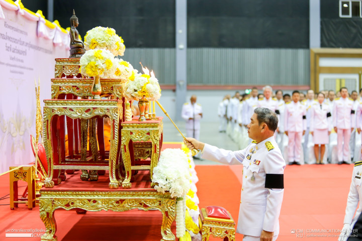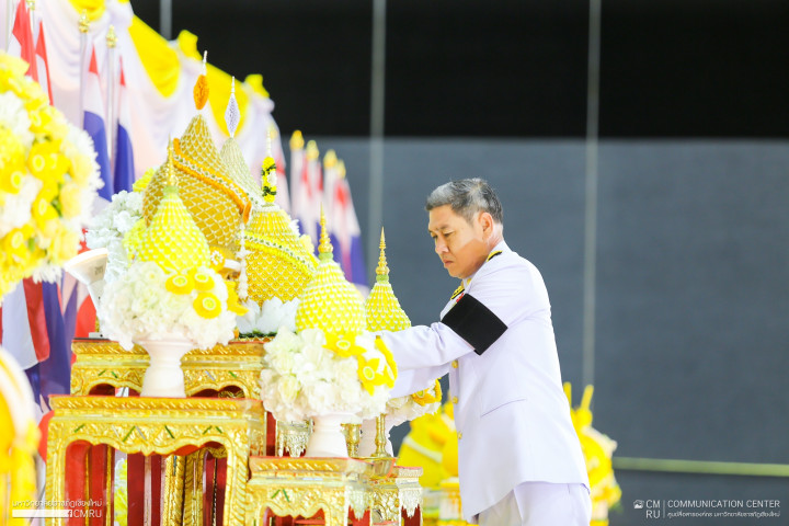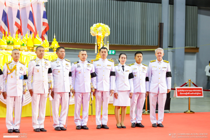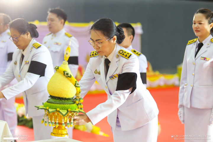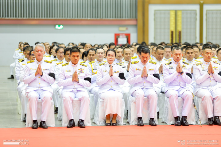 มหาวิทยาลัยราชภัฏเชียงใหม่ ร่วมพิธีสวดพระพุทธมนต์และพิธีถวายพานพุ่มดอกไม้ เนื่องในวันคล้ายวันพระบรมราชสมภพ พระบาทสมเด็จพระบรมชนกาธิเบศร มหาภูมิพลอดุลยเดชมหาราช บรมนาถบพิตร วันชาติ และวันพ่อแห่งชาติ วันที่ 5 ธันวาคม 2568