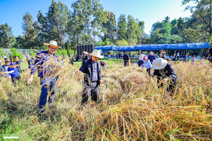 เมื่อวันที่ 11 ธันวาคม 2568 รศ.ดร.ชาตรี มณีโกศล อธิการบดีมหาวิทยาลัยราชภัฏเชียงใหม่ เป็นประธานในพิธีเปิดกิจกรรมในโครงการ “ปลูกวันแม่ เกี่ยววันพ่อ สานต่อกิจกรรมเสริมวิชาชีพ” ครั้งที่ 6 โดยมี ผู้บริหาร คณาจารย์ บุคลากร นักศึกษา และนักเรียนโรงเรียนสาธิตมหาวิทยาลัยราชภัฏเชียงใหม่ ร่วมกิจกรรม ณ แปลงนา สวนเกษตรครูน้อย มหาวิทยาลัยราชภัฏเชียงใหม่ ศูนย์แม่ริม อำเภอแม่ริม จังหวัดเชียงใหม่ ซึ่งจัดขึ้นต่อเนื่องเป็นปีที่ 6 เพื่อให้นักเรียน นักศึกษาได้เรียนรู้กระบวนการปลูกข้าวหนึ่งในพืชเศรษฐกิจของไทย ผ่านกระบวนการพี่สอนน้อง โดยมีนักศึกษาหลักสูตรครุศาสตรบัณฑิต เป็นผู้ถ่ายทอดวิธีการเกี่ยวข้าวให้นักเรียนโรงเรียนสาธิตมหาวิทยาลัยราชภัฏเชียงใหม่ ซึ่งนอกจากเป็นการส่งเสริมให้นักศึกษาได้เห็นคุณค่าของวิชาชีพด้านเกษตรกรรมอาชีพที่สร้างความมั่นคงด้านอาหารแล้วนั้น กิจกรรมในครั้งนี้ยังเป็นการฝึกฝนให้นักศึกษาครูมีโอกาสได้เรียนรู้ประสบการณ์การถ่ายทอดองค์ความรู้ให้กับนักเรียน ก่อนออกฝึกประสบการณ์วิชาชีพครูในสถานศึกษาต่าง ๆ