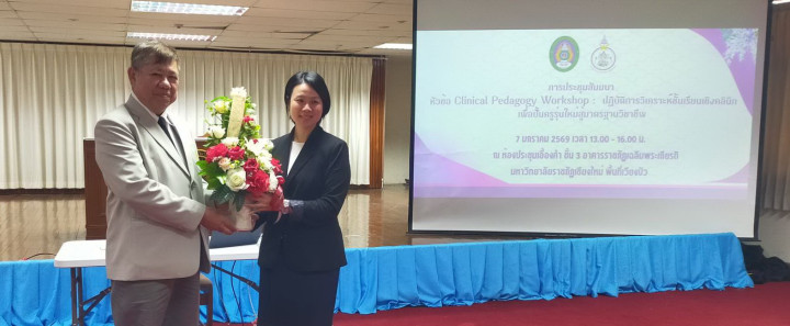 เมื่อวันที่ 7 มกราคม 2569 ผู้ช่วยศาสตราจารย์ ดร.สิรินทร์นิชา ปัญจอริยะกุล คณบดีคณะครุศาสตร์ พร้อมด้วยผู้บริหารคณะครุศาสตร์ คณาจารย์ และบุคลากร เข้าร่วมการประชุมสัมมนาเชิงปฏิบัติการบุคลากรคณะครุศาสตร์ หัวข้อ “Clinical Pedagogy Workshop : ปฏิบัติการวิเคราะห์ชั้นเรียนเชิงคลินิก เพื่อปั้นครูรุ่นใหม่สู่มาตรฐานวิชาชีพ” ณ ห้องประชุมเอื้องคำ ชั้น 3 อาคารราชภัฏเฉลิมพระเกียรติ มหาวิทยาลัยราชภัฏเชียงใหม่ พื้นที่เวียงบัว อำเภอเมือง จังหวัดเชียงใหม่
