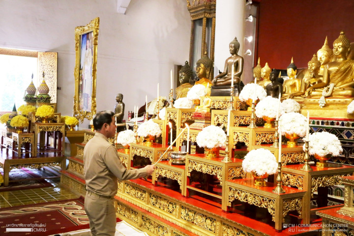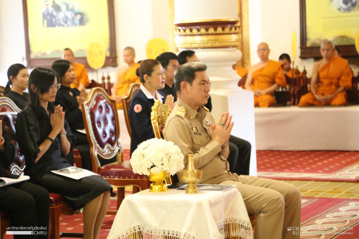ในการนี้ รองศาสตราจารย์ ดร.ชาตรี มณีโกศล อธิการบดีมหาวิทยาลัยราชภัฏเชียงใหม่ มอบหมายให้ นางสุนี พนันตา ผู้อำนวยการสำนักงานอธิการบดี พร้อมด้วย นางประไพ ปรีชา ผู้อำนวยการกองคลัง นำบุคลากรมหาวิทยาลัยราชภัฏเชียงใหม่ เข้าร่วมพิธีดังกล่าว เพื่อแสดงความจงรักภักดีและสำนึกในพระมหากรุณาธิคุณ พิธีสวดพระพุทธมนต์และเจริญจิตตภาวนาครั้งนี้ จัดขึ้นตามมติมหาเถรสมาคม มติที่ 37/2569 ซึ่งกำหนดให้มีการจัดพิธีสวดพระพุทธมนต์และเจริญจิตตภาวนา อุทิศถวายแด่สมเด็จพระนางเจ้าสิริกิติ์ พระบรมราชินีนาถ พระบรมราชชนนีพันปีหลวง เป็นประจำทุกวันศุกร์สัปดาห์สุดท้ายของเดือน ทั้งนี้ มีหัวหน้าส่วนราชการ หัวหน้าหน่วยงานรัฐวิสาหกิจ และผู้บริหารสถาบันการศึกษาในเขตอำเภอเมืองเชียงใหม่ เข้าร่วมพิธีโดยพร้อมเพรียงกัน