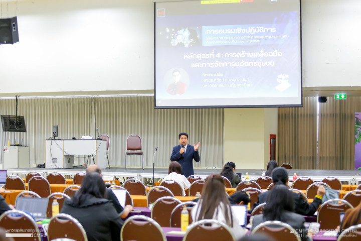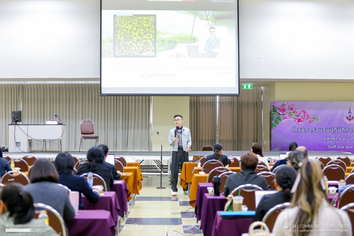 รศ.ดร.ชาตรี มณีโกศล อธิการบดีมหาวิทยาลัยราชภัฏเชียงใหม่ มอบหมายให้ อาจารย์ ดร.อัครสิทธิ์ บุญส่งแท้ รองอธิการบดี มหาวิทยาลัยราชภัฏเชียงใหม่ กล่าวเปิดการอบรมเชิงปฏิบัติการ โครงการพัฒนาสมรรถนะบุคลากรเชิงพื้นที่ (HR Re-inventing) และอบรมพัฒนาและส่งเสริมศักยภาพนักวิจัย (CMRU Boot camp 2026) ณ ห้องประชุม ชั้น 15 อาคาร 90 ปี ราชภัฏเชียงใหม่ มหาวิทยาลัยราชภัฏเชียงใหม่ พื้นที่เวียงบัว ที่จัดขึ้นระหว่างวันที่ 23-24 กุมภาพันธ์ 2569 ที่ผ่านมา