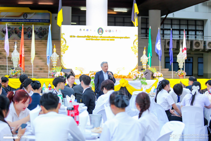 รศ.ดร.ชาตรี มณีโกศล อธิการบดีมหาวิทยาลัยราชภัฏเชียงใหม่ เป็นประธานกล่าวให้โอวาทและแสดงความขอบคุณในความเสียสละของนักศึกษาที่ได้อาสาเข้ามาช่วยปฏิบัติหน้าที่ตลอดปีการศึกษาที่ผ่านมา ในพิธีรับ-ส่งมอบหน้าที่ผู้นำนักศึกษา พิธีมอบเกียรติบัตรและทุนการศึกษา ประจำปีการศึกษา 2568 และ 2569 พร้อมด้วยคณะผู้บริหารมหาวิทยาลัย บุคลากร เจ้าหน้าที่และนักศึกษาสภานักศึกษา องค์การนักศึกษา สโมสรนักศึกษาแต่ละคณะและวิทยาลัยร่วมพิธี ณ หอประชุมทีปังกรรัศมีโชติ มหาวิทยาลัยราชภัฏเชียงใหม่ ศูนย์แม่ริม เมื่อวันที่ 2 มีนาคม 2569 ที่ผ่านมา