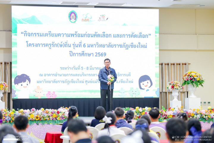 รศ.ดร.ชาตรี มณีโกศล อธิการบดีมหาวิทยาลัยราชภัฏเชียงใหม่ เป็นประธานกิจกรรมเตรียมความพร้อมก่อนการคัดเลือก และการคัดเลือก โครงการครูรัก(ษ์)ถิ่น รุ่นที่ 6 มหาวิทยาลัยราชภัฏเชียงใหม่ ปีการศึกษา 2569 พร้อมด้วยผู้ทรงคุณวุฒิและคณะทำงานจากกองทุนเพื่อความเสมอภาคทางการศึกษา (กสศ.) คณะผู้บริหาร อาจารย์ บุคลากร นักศึกษามหาวิทยาลัยราชภัฏเชียงใหม่ และนักเรียนที่ได้รับการคัดเลือกร่วมพิธีเปิดกิจกรรม ณ ห้องประชุมแม่ริม ชั้น 2 อาคารอำนวยการและบริหารกลาง  มหาวิทยาลัยราชภัฏเชียงใหม่ ศูนย์แม่ริม เมื่อวันที่ 6 มีนาคม 2569 ที่ผ่านมา